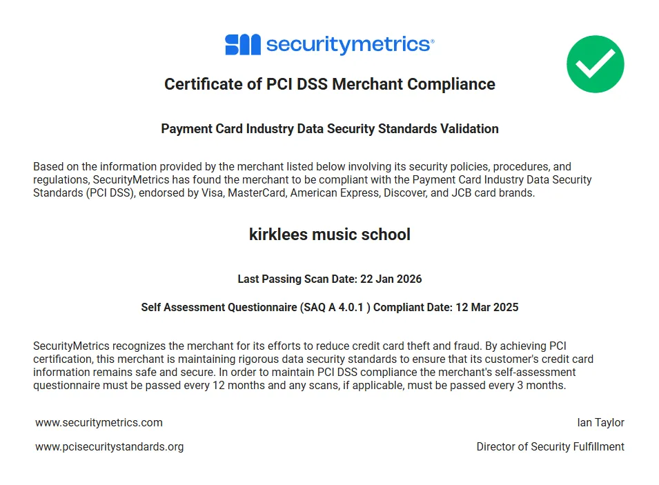 How Musica Kirklees Processes Payments Securely While Meeting PCI Standards